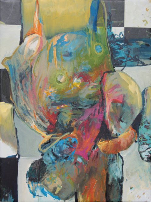 Als Mohamed die 100 Namen Allahs empfing, teilte er 99 den Menschen mit. Den 100sten flüsterte er seinem Kamel ins Ohr. Als Meisterschülerarbeit zeigt Selma Fener 99 chronologisch gehängte Bilder, die sie über 365 Tage malt. Ein jedes ist in 3,6868686868 … Tagen entstanden. Räumlich davon getrennt führt eine zweite Arbeit diese 99 in einem maßstabgetreuen Raster aus leeren Flächen zu einem Bild zusammen. Residuum steht für die unermesslich große Lücke, die bei der Annäherung an eine Lösung zurückbleibt. Im Fokus steht der Umgang mit einer Ferne, so nah und konkret sie auch scheinen mag. Ausgangspunkt nicht nur dieser künstlerischen Arbeit ist die Beziehung zur Erinnerung an religiöse Formen aus der Kindheit, die jedoch ohne konkret erinnerbaren Inhalt als verinnerlichtes Ritual funktionieren. Die inhaltliche Entleerung eines religiösen Gebets steht bei Selma stellvertretend für eine grundsätzliche künstlerische Haltung, in der es um das Aufbrechen allgemeingültiger Zeichen geht.