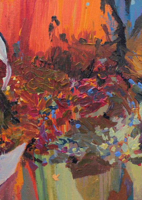 Als Mohamed die 100 Namen Allahs empfing, teilte er 99 den Menschen mit. Den 100sten flüsterte er seinem Kamel ins Ohr. Als Meisterschülerarbeit zeigt Selma Fener 99 chronologisch gehängte Bilder, die sie über 365 Tage malt. Ein jedes ist in 3,6868686868 … Tagen entstanden. Räumlich davon getrennt führt eine zweite Arbeit diese 99 in einem maßstabgetreuen Raster aus leeren Flächen zu einem Bild zusammen. Residuum steht für die unermesslich große Lücke, die bei der Annäherung an eine Lösung zurückbleibt. Im Fokus steht der Umgang mit einer Ferne, so nah und konkret sie auch scheinen mag. Ausgangspunkt nicht nur dieser künstlerischen Arbeit ist die Beziehung zur Erinnerung an religiöse Formen aus der Kindheit, die jedoch ohne konkret erinnerbaren Inhalt als verinnerlichtes Ritual funktionieren. Die inhaltliche Entleerung eines religiösen Gebets steht bei Selma stellvertretend für eine grundsätzliche künstlerische Haltung, in der es um das Aufbrechen allgemeingültiger Zeichen geht.