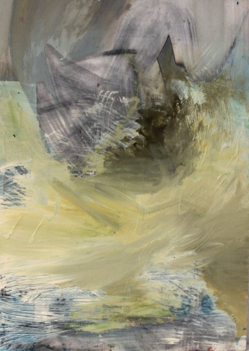 Als Mohamed die 100 Namen Allahs empfing, teilte er 99 den Menschen mit. Den 100sten flüsterte er seinem Kamel ins Ohr. Als Meisterschülerarbeit zeigt Selma Fener 99 chronologisch gehängte Bilder, die sie über 365 Tage malt. Ein jedes ist in 3,6868686868 … Tagen entstanden. Räumlich davon getrennt führt eine zweite Arbeit diese 99 in einem maßstabgetreuen Raster aus leeren Flächen zu einem Bild zusammen. Residuum steht für die unermesslich große Lücke, die bei der Annäherung an eine Lösung zurückbleibt. Im Fokus steht der Umgang mit einer Ferne, so nah und konkret sie auch scheinen mag. Ausgangspunkt nicht nur dieser künstlerischen Arbeit ist die Beziehung zur Erinnerung an religiöse Formen aus der Kindheit, die jedoch ohne konkret erinnerbaren Inhalt als verinnerlichtes Ritual funktionieren. Die inhaltliche Entleerung eines religiösen Gebets steht bei Selma stellvertretend für eine grundsätzliche künstlerische Haltung, in der es um das Aufbrechen allgemeingültiger Zeichen geht.